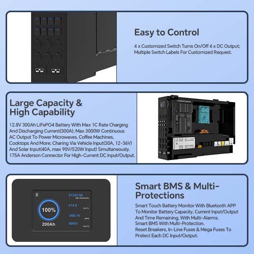 - 1 x 3-pin 50A Anderson connector for in-vehicle input