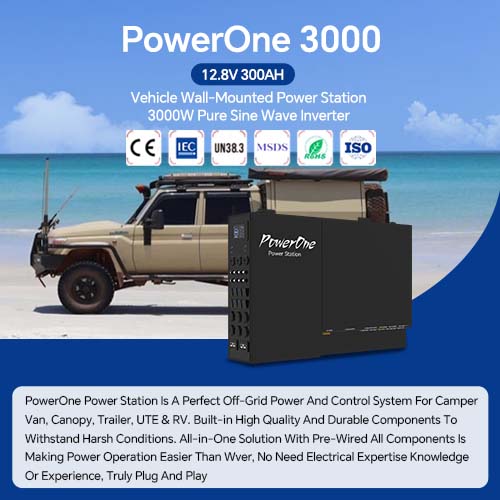 Licitti PowerOne 3000 is All-in-one in-vehicle power station 12.8V 300AH with 3000W pure sine wave inverter,for camper van, canopy, trailer, UTE & RV.